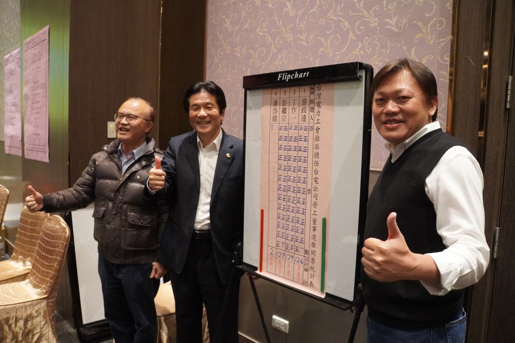 本次代表大會辦理第15屆理事長、勞工董事、理監事、勞資會議代表、團體協約代表、勞工董事諮詢委員、職安委員及各項會議代表改選,吳有彬理事長以130票100%的得票率全票當選、勞工董事分別由丁作一代表(129票)、彭繼宗代表(127票)以及游政達代表(126票)高票當選。本會在第14屆丁理事長領導下,創造多項「不可能的務任」,工會向心力凝聚至最高,更是工會前所未有的顛峰,未來工會面臨台電組織轉型之嚴峻挑戰,吳理事長承襲使命,一定會秉持維護會員權益之精神,帶領台電工會全力向前衝!吳理事長表示,「團結才是唯一力量」,台電工會一定會繼續發光發熱!