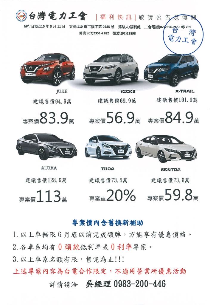 NISSAN購車優惠專案 2021年 05月 12日 tplu 福利處, 福利專區 NISSAN購車優惠專案 已關閉迴響。 NISSAN購車優惠專案下載 分享此文: 分享到 LINE(在新視窗中開啟) LINE Tweet 按一下即可以電子郵件傳送連結給朋友(在新視窗中開啟) 電子郵件 相關