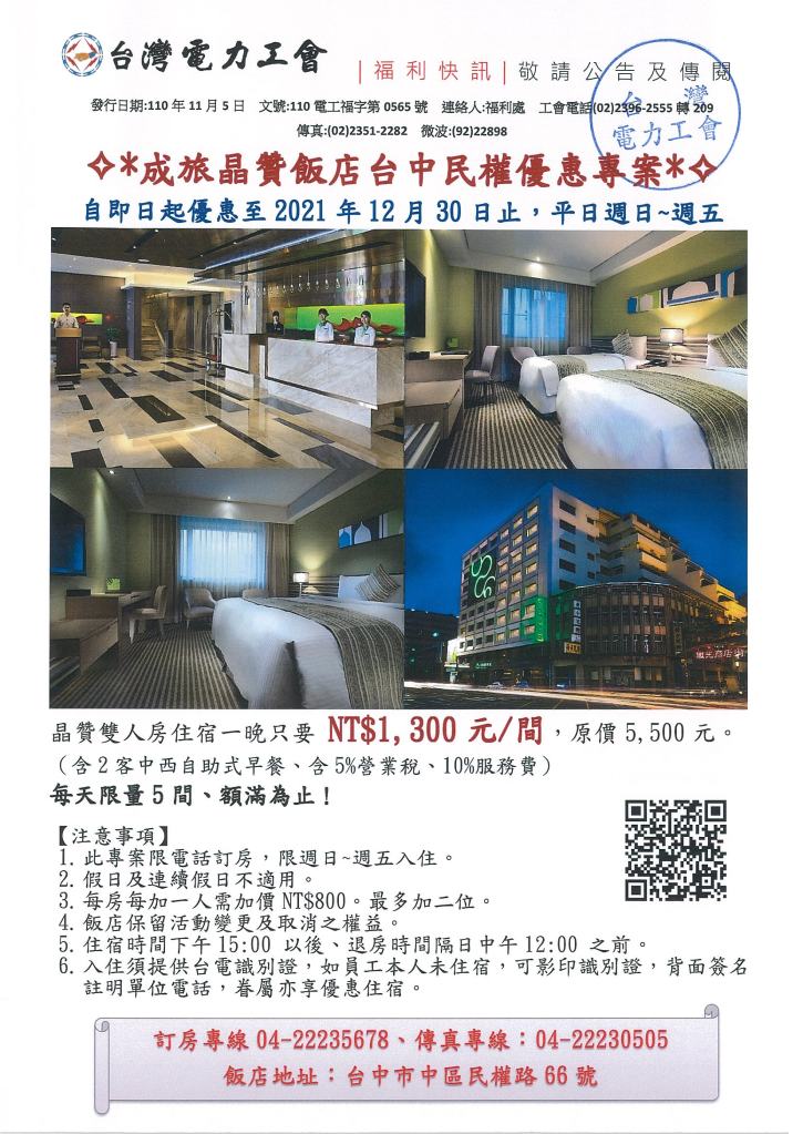 成旅晶贊飯店台中民權優惠專案 2021年 11月 8日 tplu 福利處, 福利專區 成旅晶贊飯店台中民權優惠專案 已關閉迴響。 成旅晶贊飯店台中民權優惠專案下載 分享此文: 分享到 LINE(在新視窗中開啟) LINE Tweet 按一下即可以電子郵件傳送連結給朋友(在新視窗中開啟) 電子郵件 相關