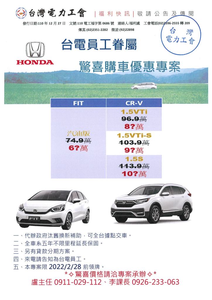 HONDA台電購車優惠方案 2021年 12月 27日 tplu 福利處, 福利專區 HONDA台電購車優惠方案 已關閉迴響。 HONDA台電購車優惠方案下載 分享此文: 分享到 LINE(在新視窗中開啟) LINE Tweet 按一下即可以電子郵件傳送連結給朋友(在新視窗中開啟) 電子郵件 相關