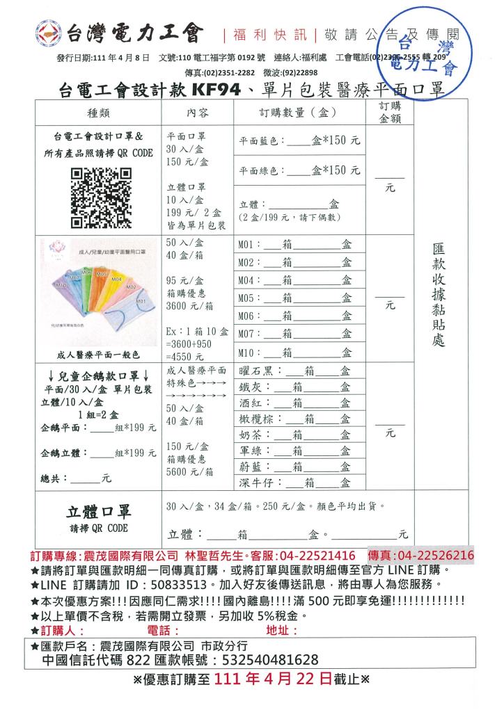 成人、兒童口罩優惠專案 2022年 04月 8日 tplu 福利處, 福利專區 成人、兒童口罩優惠專案 已關閉迴響。 成人、兒童口罩優惠專案下載 分享此文: 分享到 LINE(在新視窗中開啟) LINE Tweet 按一下即可以電子郵件傳送連結給朋友(在新視窗中開啟) 電子郵件 相關