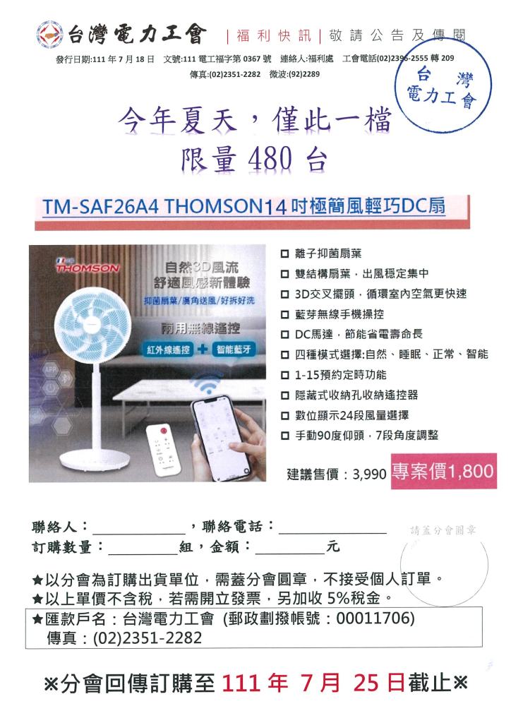 THOMSON 14吋DC風扇 2022年 07月 18日 tplu 福利處, 福利專區 THOMSON 14吋DC風扇 已關閉迴響。 THOMSON 14吋DC風扇下載 分享此文: 分享到 LINE(在新視窗中開啟) LINE Tweet 按一下即可以電子郵件傳送連結給朋友(在新視窗中開啟) 電子郵件 相關