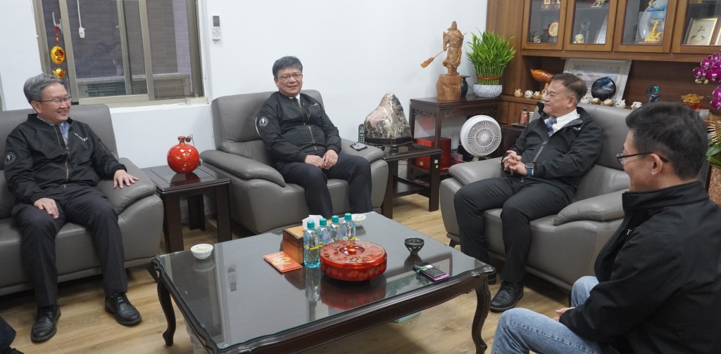 2/15經濟部次長兼台電公司代理董事長曾文生與總經理王耀庭拜會本會理事長吳有彬,在副總經理蔡志孟及董事會秘書室主任秘書鄭壽福、人資處處長沈樹禮、企劃處副處長吳翔文陪同下向本會全體會員拜年。