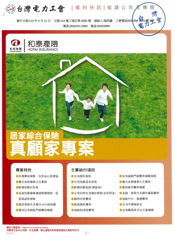 和泰產險 2025年 04月 17日 tplu 福利處, 福利專區 和泰產險 已關閉迴響。 114電工福字第0205號(和泰產險 快訊)下載 分享此文: 分享至 LINE(在新視窗中開啟) LINE Tweet 以電子郵件將連結傳送給朋友(在新視窗中開啟) 電子郵件 相關